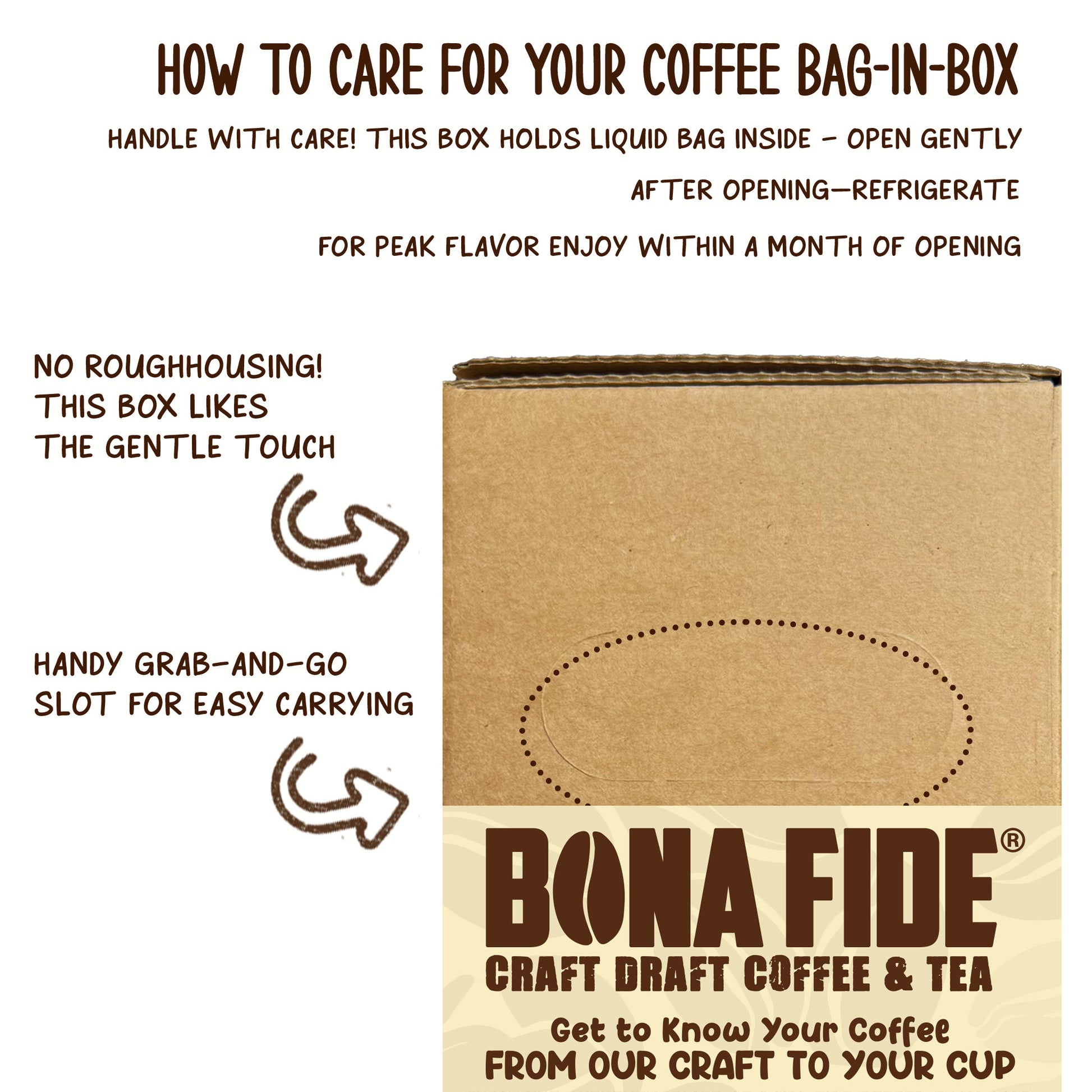 How to Enjoy: Chill and serve Bona Fide BTCB coffee just as you like it. It tastes great black or with your favorite creamer or sweetener. The convenient tap makes it easy to dispense a fresh, delicious glass every time.